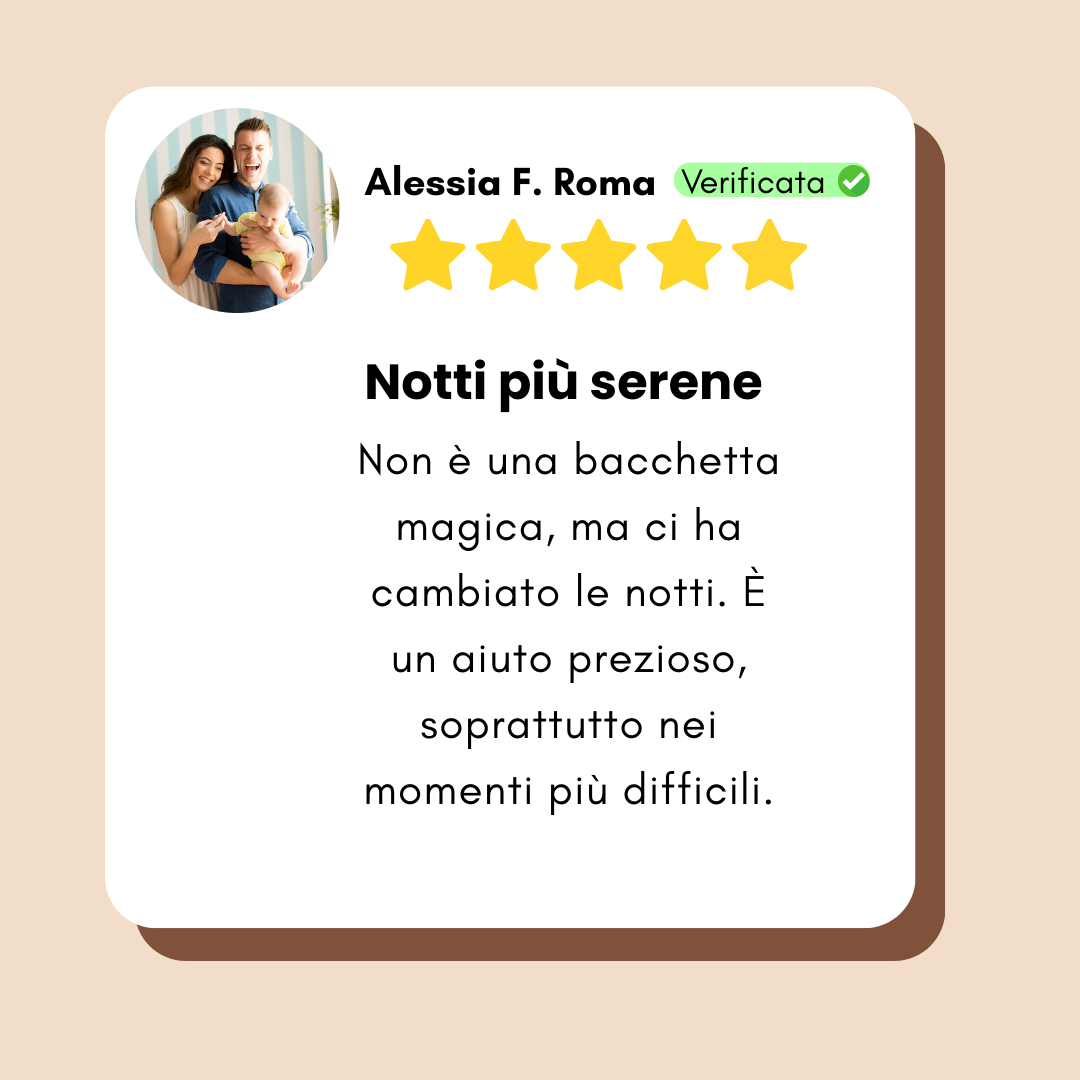 Anche quando le notti sembrano infinite, il Guanto Nanna Relax® aiuta il tuo piccolo a rilassarsi e a prendere sonno. Grazie al suo gesto delicato, riduce l’agitazione e rende più sereno il riposo di tutta la famiglia, permettendoti di affrontare la giornata con più energia.